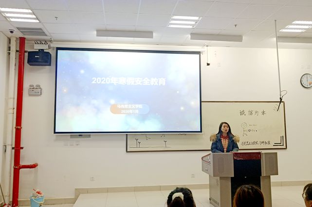 会上,刘媛从离校安全、饮食安全、用电安全和防火安全等方面强调了假期安全工作的重要性,为大家介绍了相关预防措施及详细的应对方法,并着重强调了寒假离校时的出行安全以及个人贵重物品的保管问题。同时,她叮嘱同学们要充分利用寒假时间,多阅读书籍,多参加社会实践活动,进一步充实自己的生活,鼓励大家积极做好参加英语四六级考试和“互联网+”、大学生创新创业项目等活动的准备工作。