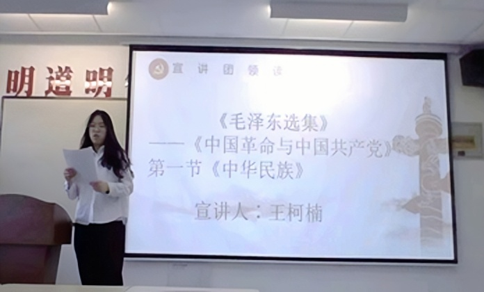 本次活动以“共读红色经典,坚定文化自信” 为主题,郑思佳同学围绕主题介绍并领学了习近平总书记关于文化自信的系列讲话,宣讲团成员王柯楠、孙静怡同学分别带领大家细读《毛泽东选集》中节选内容《中华民族》与人民日报发表文章《革命文化何以铸就文化自信》。为深入了解文化自信的内涵与意义,大家观看视频《为什么只有中国文明一直延续至今》。在分享交流环节,同学们积极连麦、踊跃发言,举例说明对“文化自信”的理解,并从个人角度分享了如何做到坚持文化自信。大家纷纷表示要坚定“四个自信”,自觉肩负起时代使命,为祖国的发展奉献自己的力量。