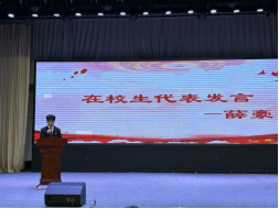 会上,在校生代表薛豪进行发言,他代表全体学长学姐向新同学的加入表示热烈欢迎。他结合自身经历,分享了“理论与实践共行”的重要性,鼓励新生们珍惜时光,努力奋斗,在马院书写无悔青春。